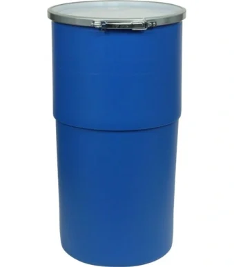 15 Gallon Blue Plastic Drum, Taper Sided, UN Rated, Cover w/Metal Lever Lock