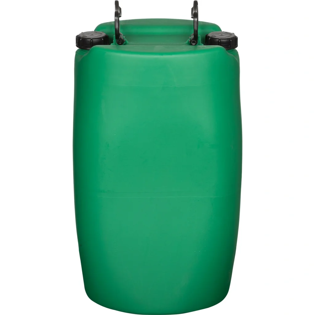 15 Gallon Green Tight Head Plastic Drum, 2″ NPS & 2″ Buttress Fittings, Two Handles