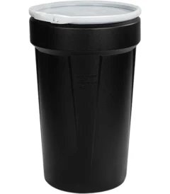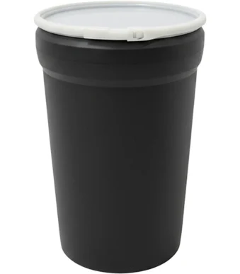 55 Gallon Black Plastic Drum, Taper Sided, UN Rated, Natural Cover w/Plastic Lever Lock